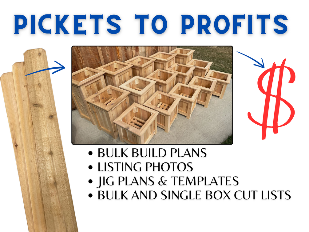 Transform Your Woodworking Hobby into Profit – build & sell flower boxes with these bulk build plans! Includes plans for jigs, listing photos, and more!